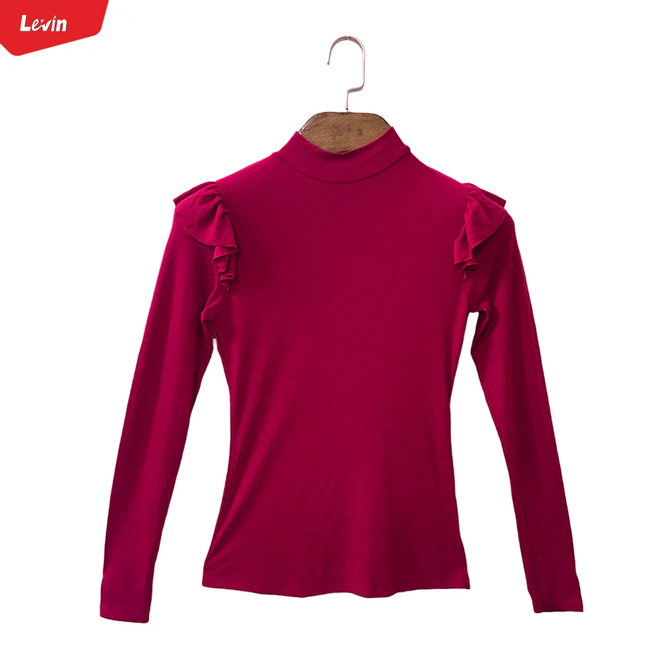 Girls Ribbed Ruffle Trim Shoulder Mock Neck Tops