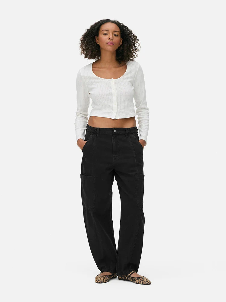 - Design: Features an intricate pointelle knit pattern and a flattering cropped length.