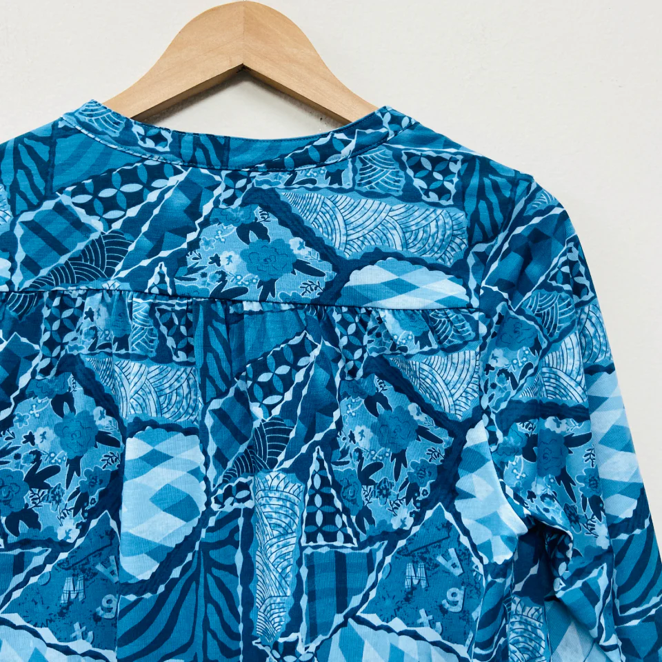 - Flattering round neckline: The top has a flattering round neckline with a v-neck detail and a slightly rounded hem for a relaxed look.