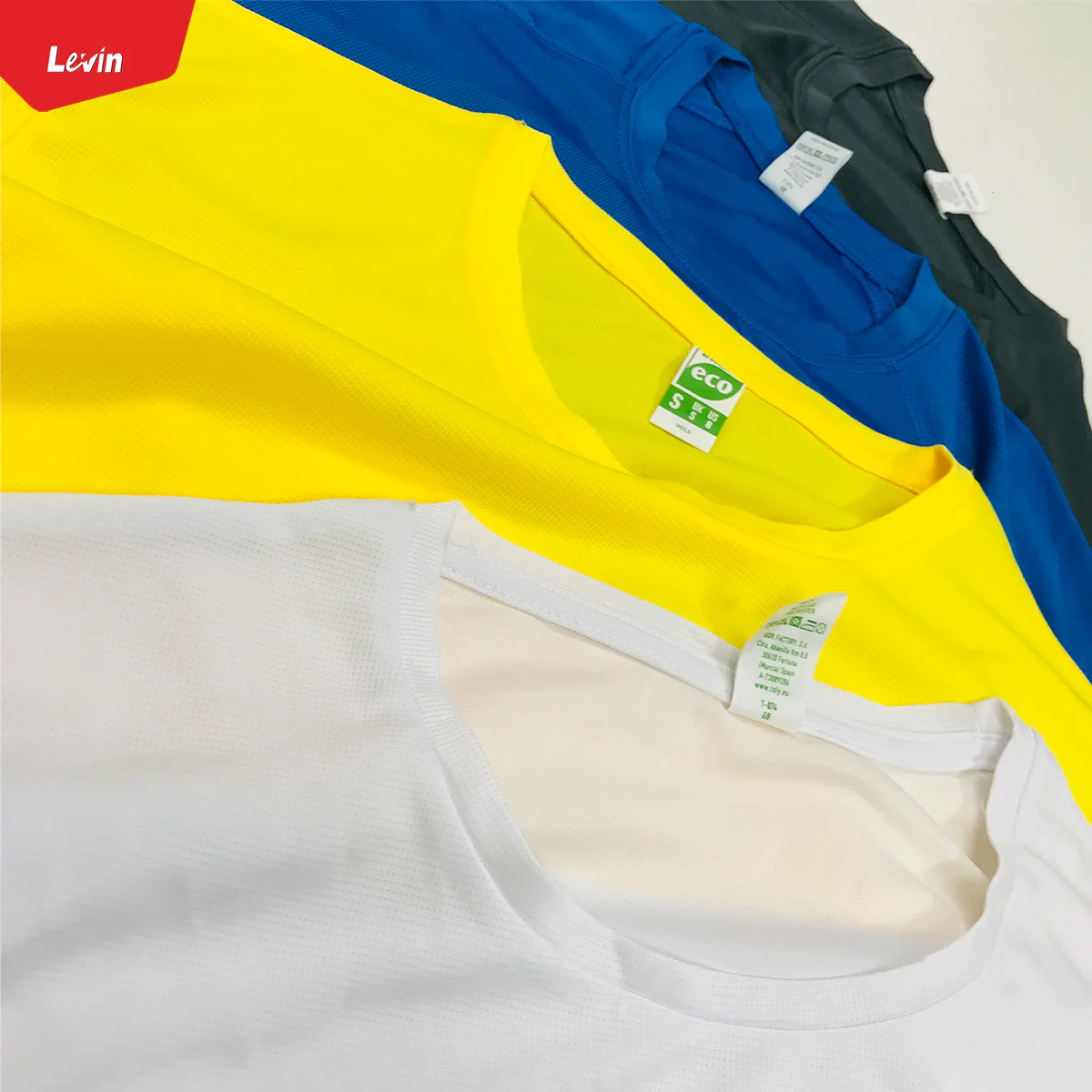 LEVIN Men's Half Sleeve Round Neck Jersey T-Shirt is an eco-friendly and technical garment with 50% recycled polyester and 50% polyester, waffle interlock construction. It weighs 135 gsm and features a removable ECO label, as well as packing in recycled material. This tee is also equipped with Control-Dry technology to keep you comfortable and dry. Additionally, it is constructed with a higher stitch count and reinforced shoulder seams for durability, as well as sturdy set-on ribbed collar and double-needle stitching at sleeves and bottom hem for long-lasting wear. Finally, the narrow ribbed crewneck provides a streamlined look.