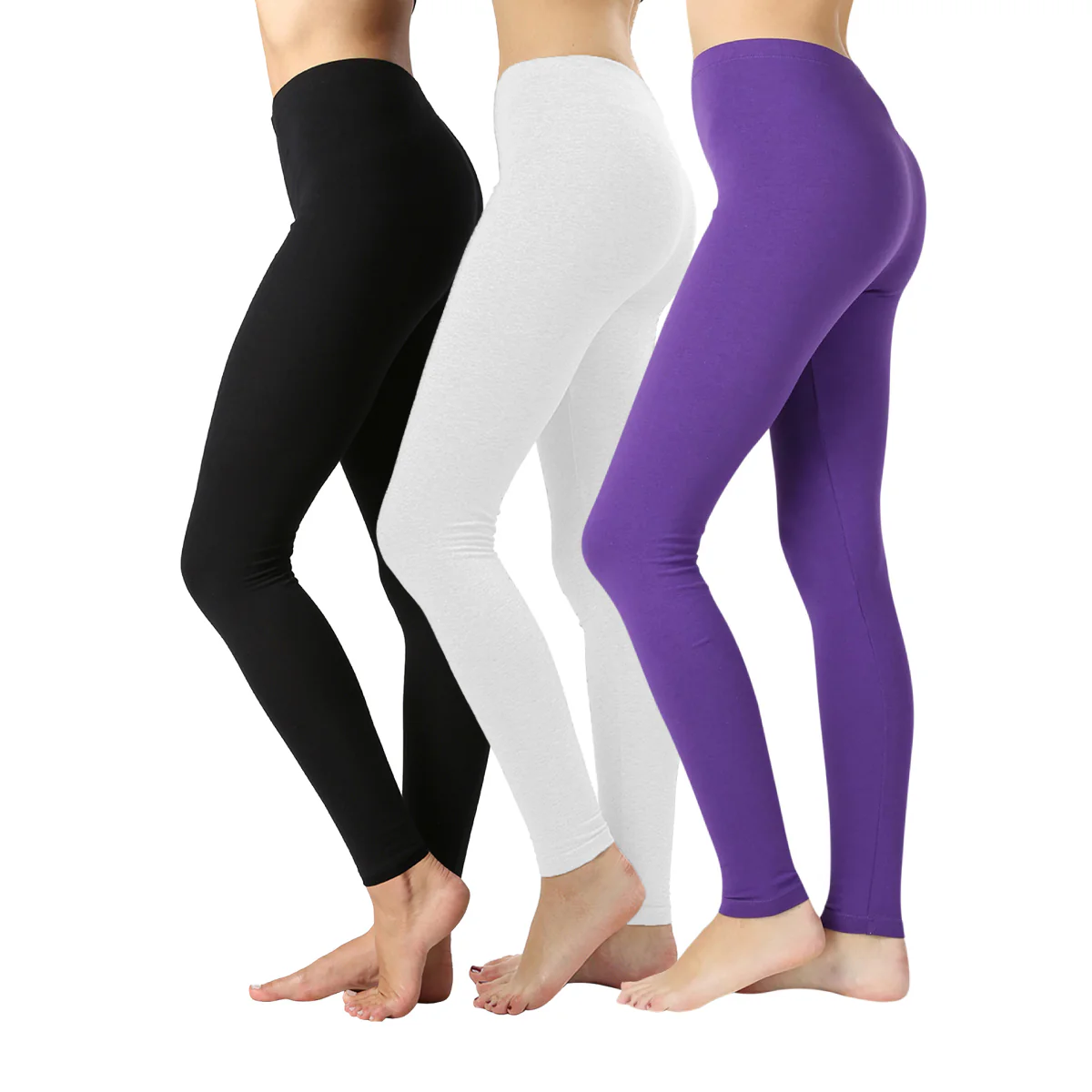 Pack of 3 Women Basic Solid Color Cotton Full Length Leggings