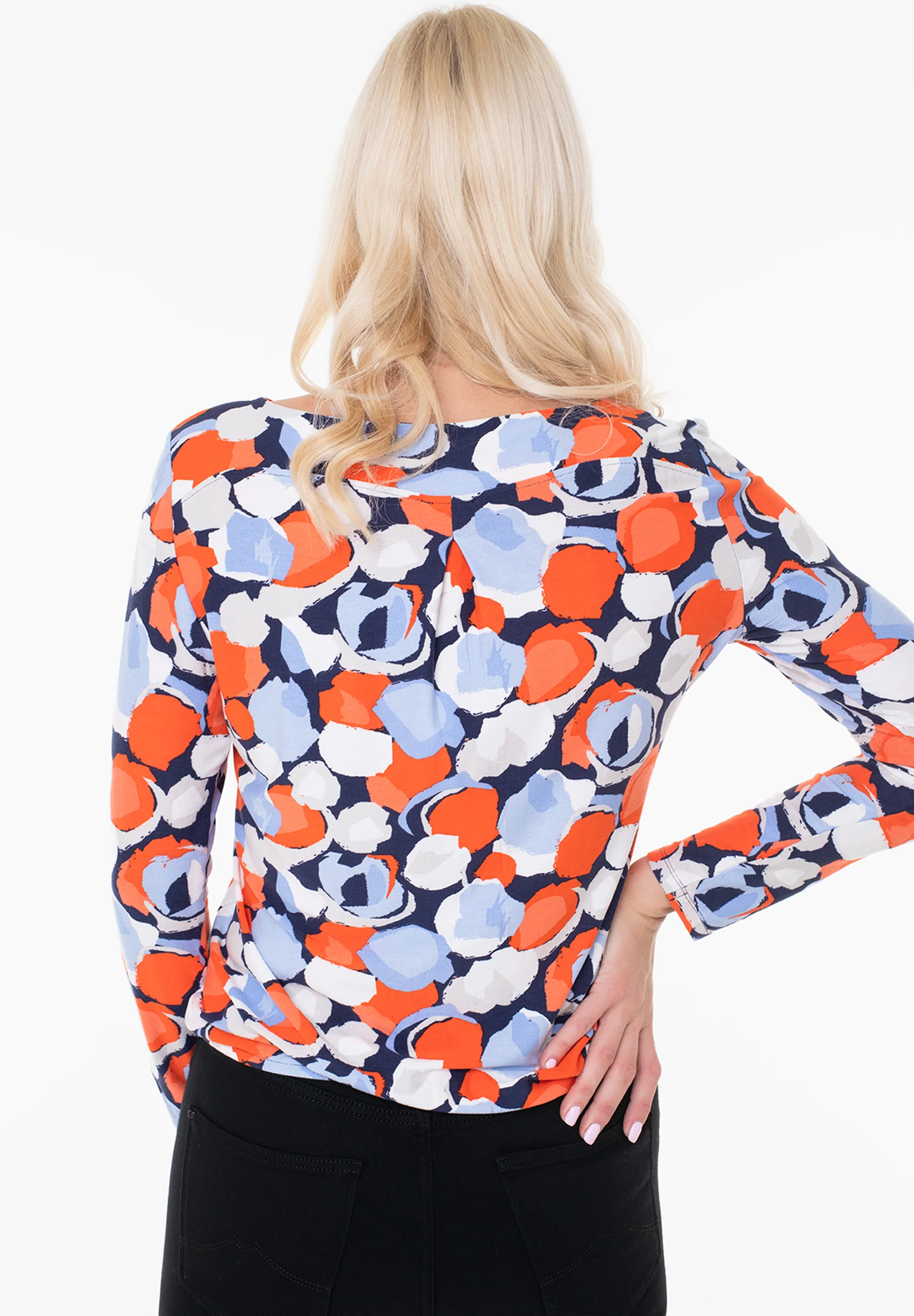 Womens Boat Neck Long Sleeve Printed Top